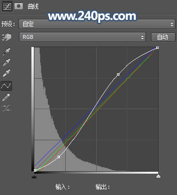 15、同上的方法用曲线把人物背光区域再压暗一点,如下图。