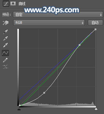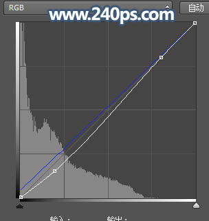 18、按Ctrl + Alt + 2 调出高光选区,按Ctrl + Shift + I 反选得到暗部选区,然后创建曲线调整图层,对RGB,蓝通道进行调整,参数及效果如下图。这一步把图片暗部压暗一点,并增加蓝色。