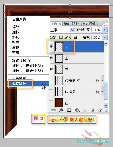 同样按Ctrl T调出自由变换工具。在变换框里点右键,选点“垂直翻转”。