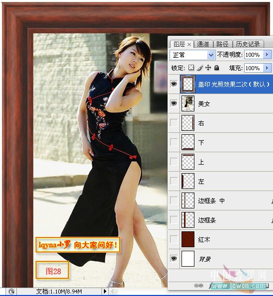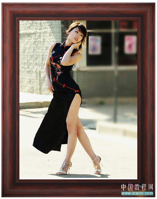 Photoshop照片添加红木相框教程