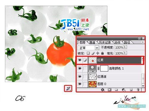 ·新建图层,将先前选取的红色番茄复制到新图层。