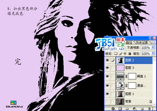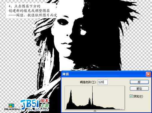4、点击图层下方的创建新的填充或者调整图层—— 阈值,数值依照图片而定: