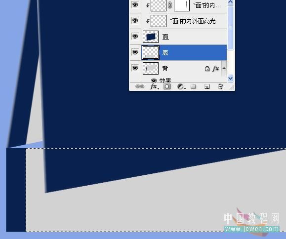 在面与背之间再新建一个底图层,用面的颜色画一个矩形,载入选区,移动选区,调整明度