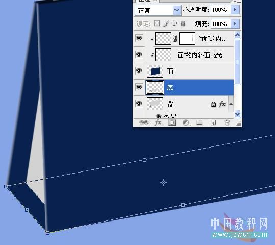 复制一份,命名为面.关掉背的眼睛,点面图层,CTRL+T自由变换成如图所示.注意透视.然后着色.