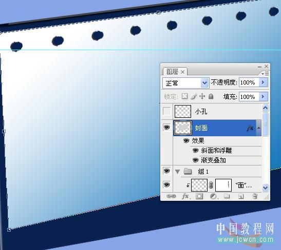 将小孔层载入选区,点封面层,按DEL删除,现在可以删除小孔层了