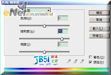 第二步:打开素材1,用套索工具(快捷键为L)或魔棒工具(快捷键为W)抠出小天使,执行【编辑-变换-水平翻转】命令,然后放到中秋文件的左下角位置,系统默认为图层1,执行菜单【图像-调整-色相饱和度】命令,饱和度设置为+70,设置图如[图2]所示,得到效果如[图3]所示;