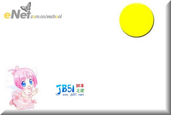 第三步:新建图层,使用椭圆选框工具(按住Shift键)在相应的位置画出月亮,填充正黄色(颜色代码为ffff00),设置图层效果斜面与浮雕,设置如[图4]所示;得到效果如[图5]所示;