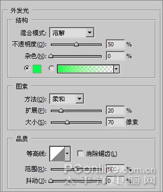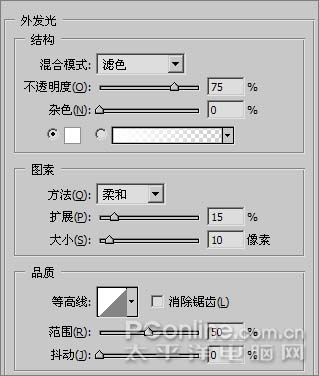 <图13> #p# 2、如下图14设定外发光样式。图像效果如下图15。