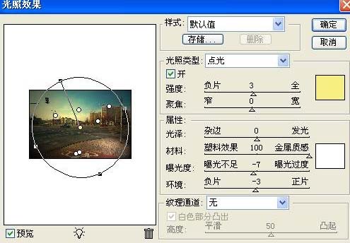 3、新建一个图层,盖印图层,执行:滤镜 > 渲染 > 光照效果,参数设置如下图。