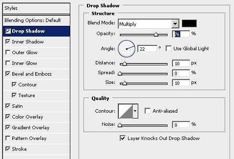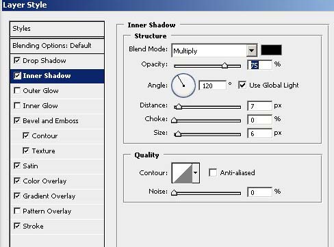 #p# 8、继续设置图层样式 【内阴影】 黑色, 模式=【正片叠底】 ,其他设置如图;【投影】 黑色 , 模式=【正片叠底】,其他设置如图