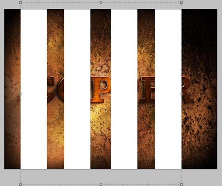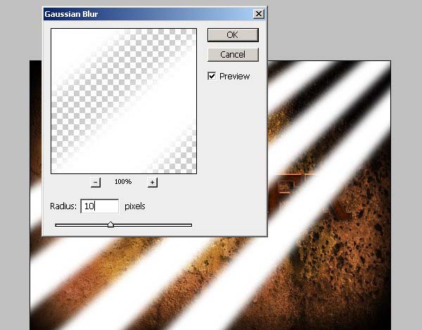 #p# 14、继续为文字增加光线效果,新建图层置为顶层 命名为 【光线效果】用选框工具会绘制一些矩形选区,填充白色然后,自由变换,执行滤镜,滤镜-模糊-高斯模糊,更改为【叠加】模式,不透明度=50%。
