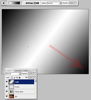 5、新建图层 light层 设置为顶层,填充 白色-黑色 的【对称渐变】,调整图层的曲线,然后将图层模式更改为【叠加】 。