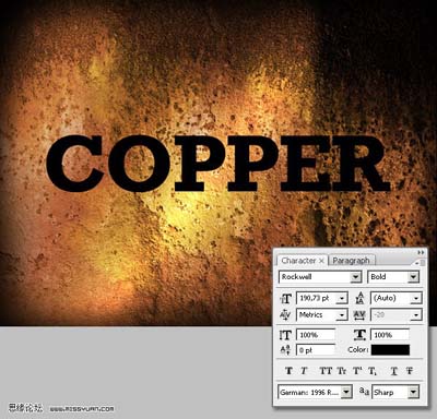 #p# 6、有趣的部分开始啦, 打上文字,这里选用的是 Rockwell 字体。