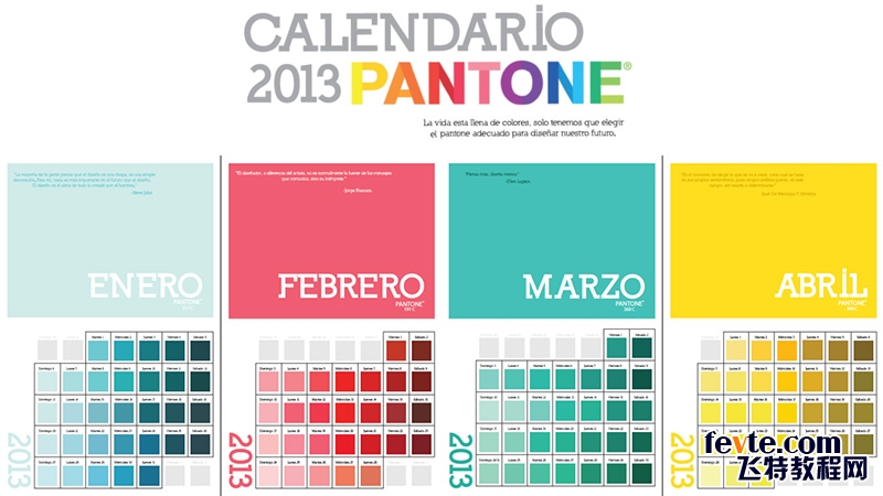 为了充分发觉彩通那种类繁多的色彩,你并不一定需要访问网站或者买一本标满色彩的彩通色标手册,Silvia Macedo的年历项目可能就能帮到你——她所制作的2013年的年历就已经标出了许多常用且足够时尚的色彩。
