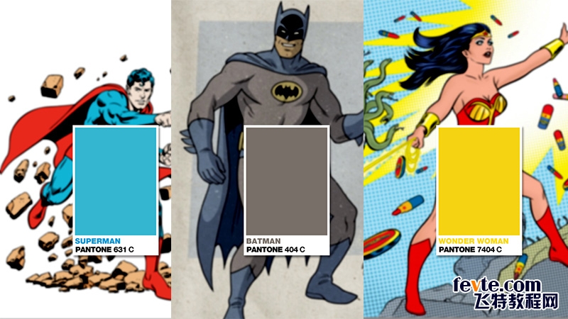 同第九个案例一样,设计师同样打算从超级英雄们的标志性服装上提取颜色,制作成彩通色标。唯一不同的是,案例9用的是漫威的英雄,而这个用的是DC的超级英雄。