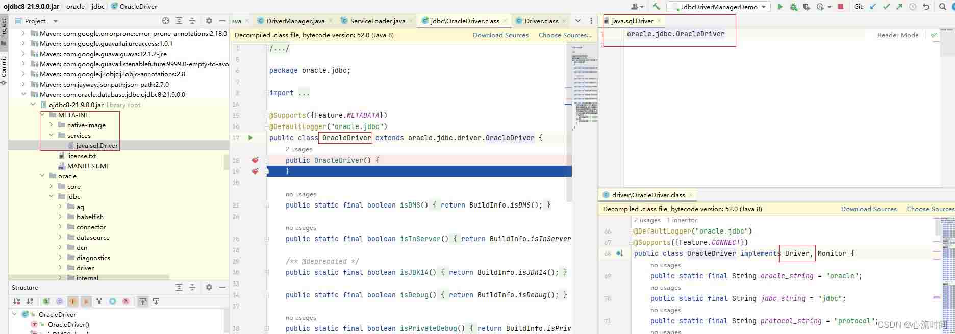 - 3.2.3.1 oracle驱动具体实现类oracle.jdbc.OracleDriver,实现了java.sql.Driver