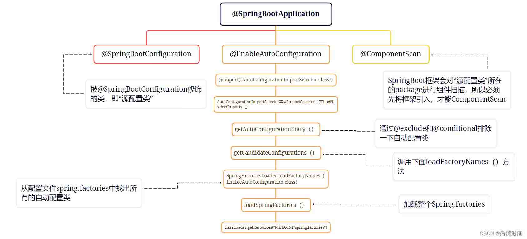 - 它会扫描项目依赖中所有jar包的META-INF/spring.factories文件,这些文件定义了哪些自动配置类应该被应用到当前项目中。
