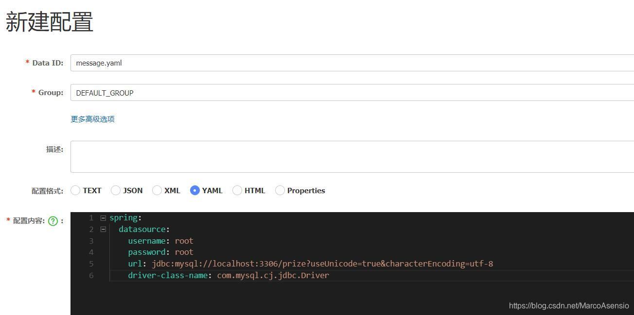 group: DEFAULT_GROUP主要配置了服务的名称、Nacos 注册中心的地址、配置文件的后缀名以及组的名称,我在 Nacos 注册中心上做了如下配置: