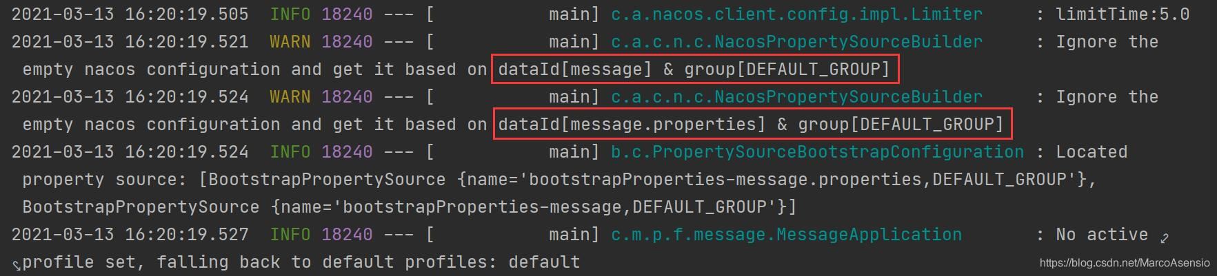 Nacos 默认会在启动的时候去配置中心上读取名为