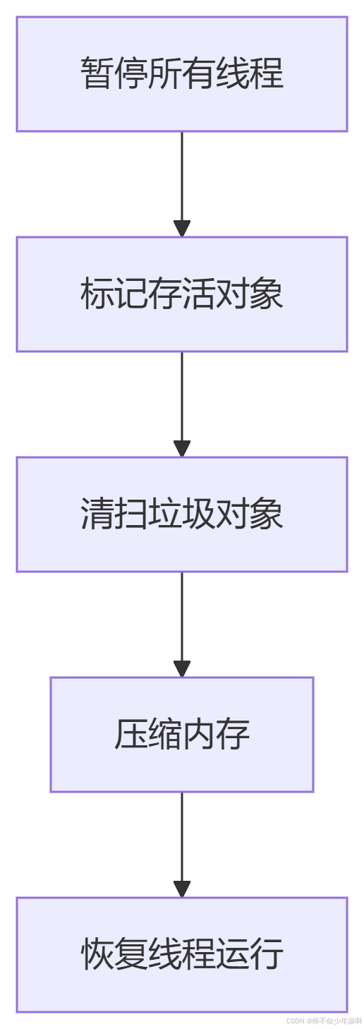 // 压缩前:内存碎片化(空闲但分散) [对象A][空闲][对象B][空闲][对象C] // 压缩后:对象紧密排列 [对象A][对象B][对象C][大块连续空闲空间]
