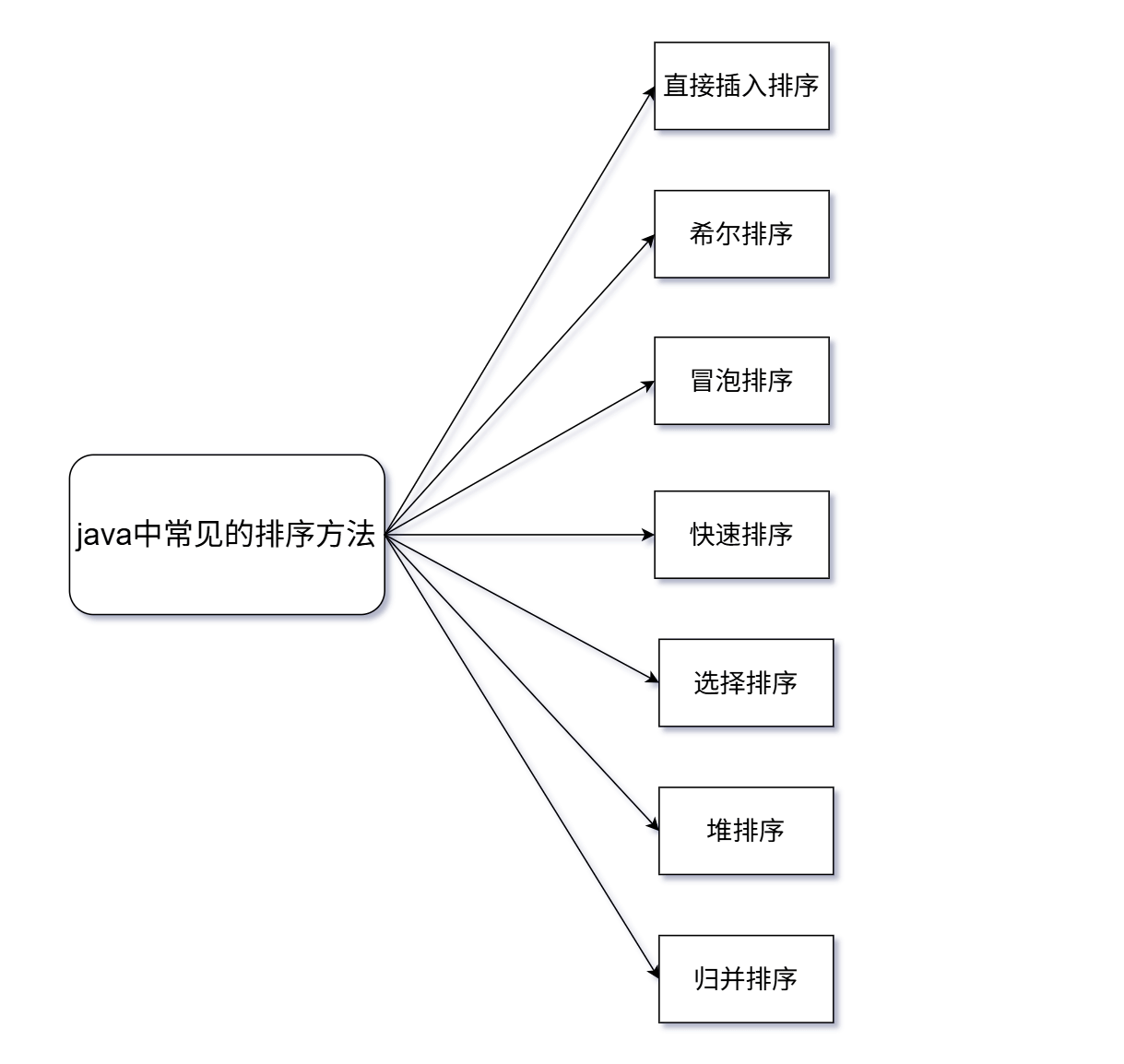 Java中的常用排序方法有:直接插入排序,希尔排序,冒泡排序,递归排序,堆排序,快速排序,选择排序。