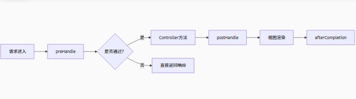 - preHandle(): 在Controller方法执行前调用(用于权限验证等)
