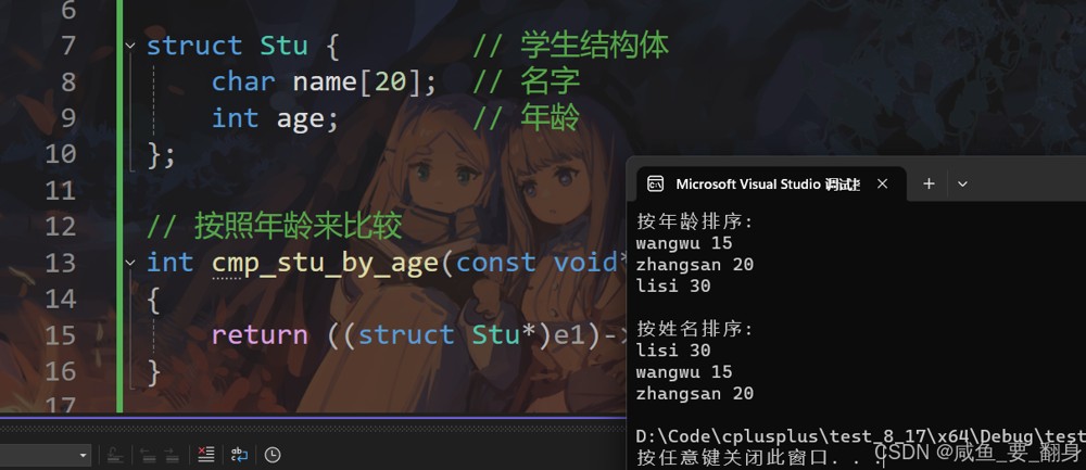 函数对结构体数组进行排序,重点在于两个比较函数cmp_stu_by_age