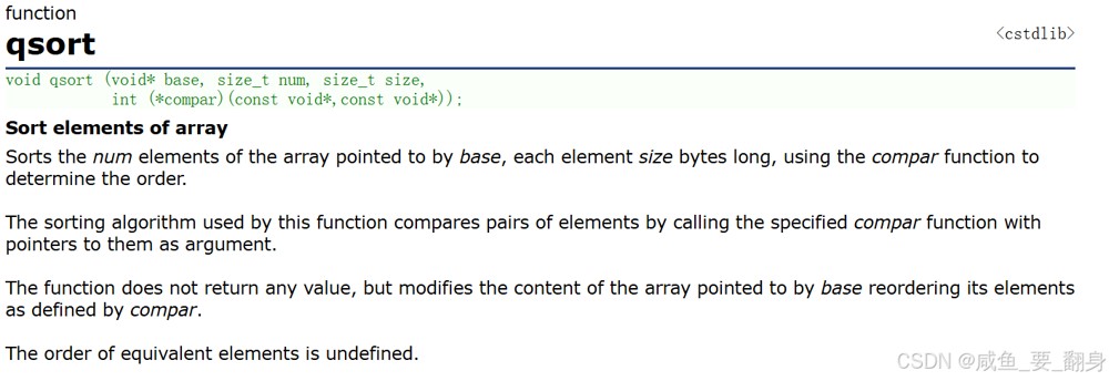 qsort是C标准库中的一个快速排序函数,位于stdlib.h头文件中。它的原型如下:
