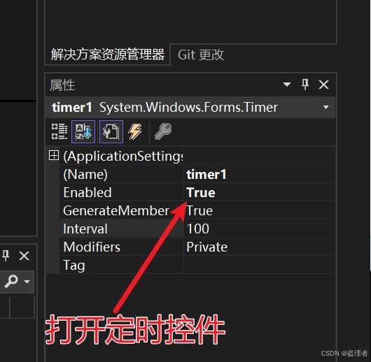 时,Timer开始计时并引发Tick事件;设置为false