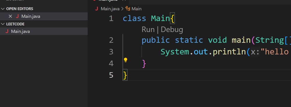 class Main{ public static void main(String[] args) { System.out.println("hello java"); } }