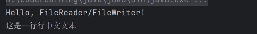 import java.io.*; public class Main { public static void main(String[] args) { // 写入文本到文件 try (FileWriter writer = new FileWriter("test.txt")) { writer.write("Hello, FileReader/FileWriter!\n"); writer.write("这是一行行中文文本"); } catch (IOException e) { e.printStackTrace(); } // 从文件读取文本 try (FileReader reader = new FileReader("test.txt")) { char[] buffer = new char[1024]; int len; while ((len = reader.read(buffer)) != -1) { System.out.print(new String(buffer, 0, len)); } } catch (IOException e) { e.printStackTrace(); } } }