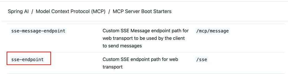 首先,根据SpringAI官方文档,在yaml文件中,spring.ai.mcp.server.sse-endpoint为自定义端点