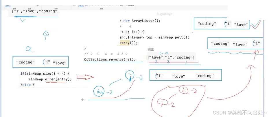 如果频率相同放入堆中要使用大根堆,要让love排在i的前面