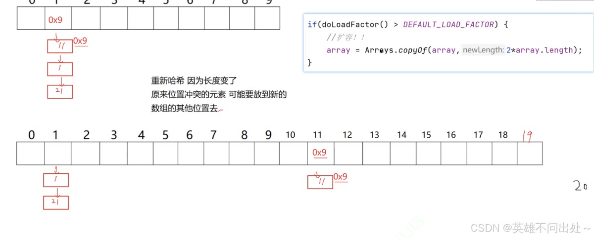 4. 扩容之后需要重新哈希,因为数组长度变了,要重新计算节点存放的位置