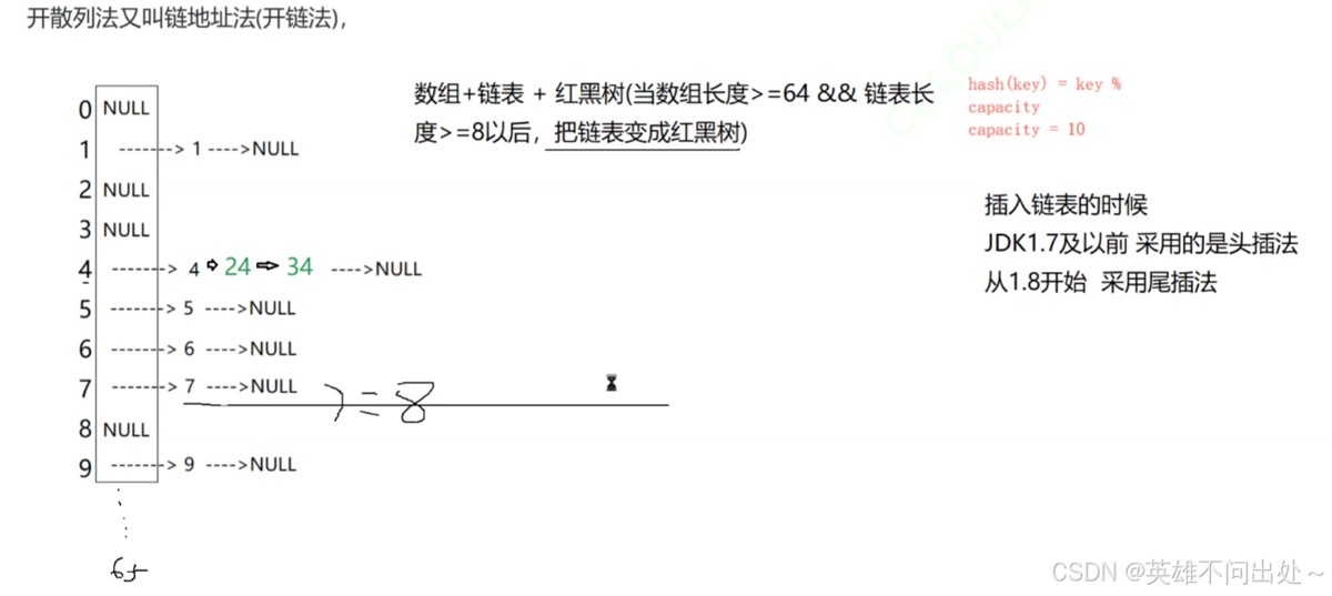 - 开散列:又叫链地址法,为了解决空间利用率不高的问题,开散列是数组 + 链表 + 红黑树的模式