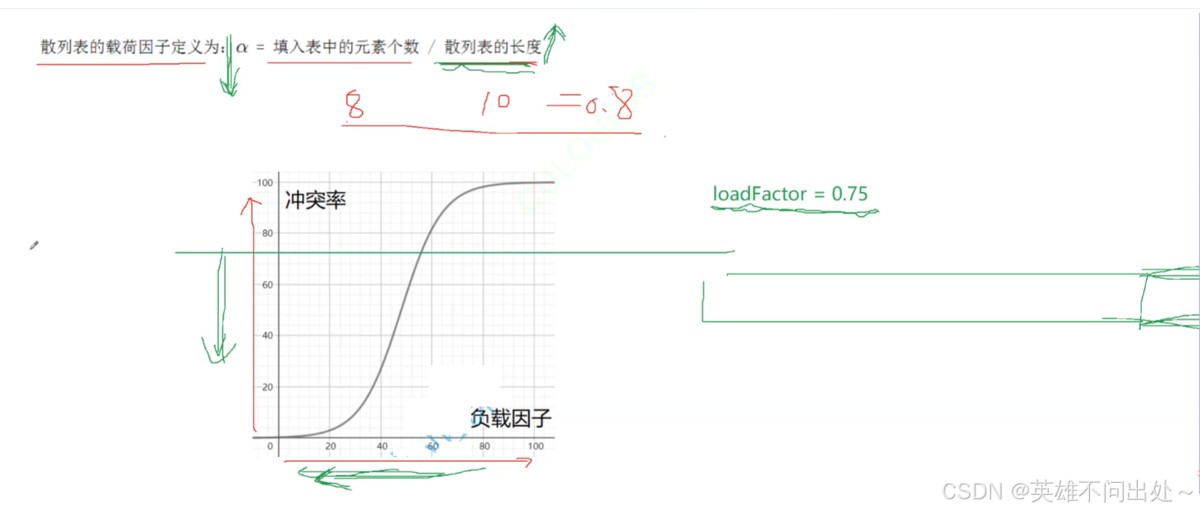 - 负载因子影响了哈希冲突,负载因子越大冲突率越高