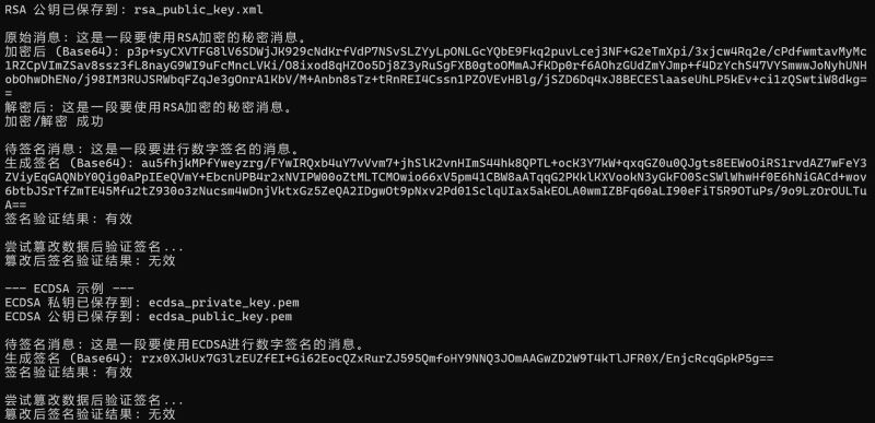 Console.WriteLine($"篡改后签名验证结果: {(isTamperedValid ? "有效" : "无效")}");