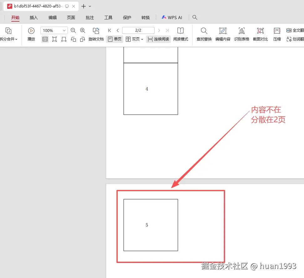从上图可以看到,生成的pdf,内容跨了2页,那么如何解决这个问题呢?通过css样式解决