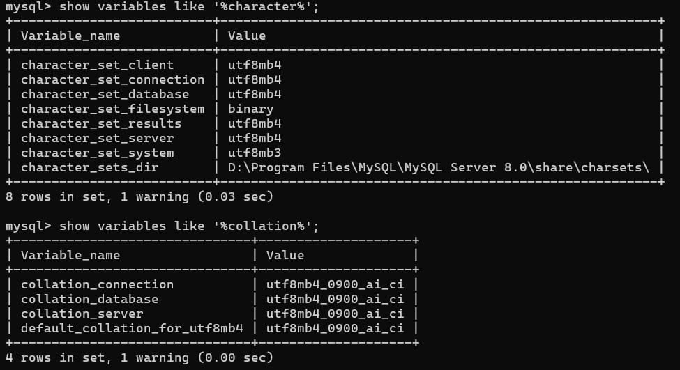 我们可以分析一下当前字符集和排序规则对数据库的影响