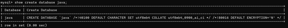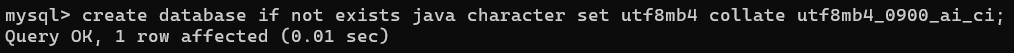create database if not exists java character set utf8mb4 collate utf8mb4_0900_ai_ci;