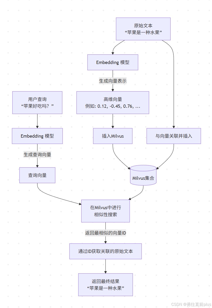 - 可以把 Milvus 理解成一个专门处理“向量”这种特殊数据的数据库。传统数据库(如 MySQL)擅长处理数字、文字这类结构化数据,并按精确条件查询(比如 WHERE age > 18)。而向量数据库的核心是相似性搜索,它通过计算向量之间的“距离”或“相似度”,来找到最相近的结果。