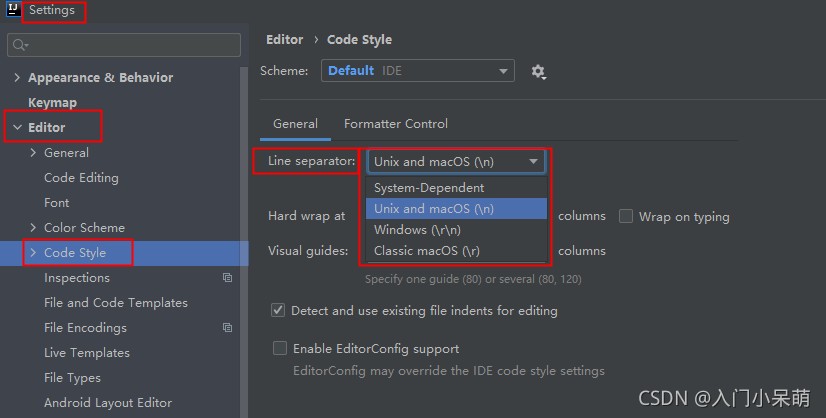1、一劳永逸,杜绝后续类似问题的出现,可将IDEA的默认配置修改为了LF