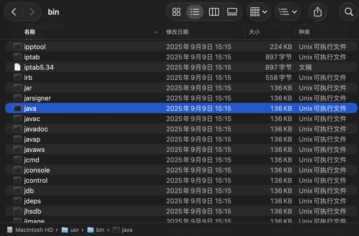 遍历 /Library/Java/JavaVirtualMachines/和 ~/Library/Java/JavaVirtualMachines/:查找所有已安装的 JDK。