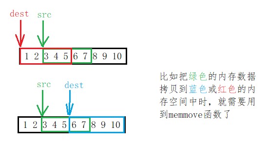 1.12.2 如果源空间和目标空间发生了重叠,就得使用memmove来处理。