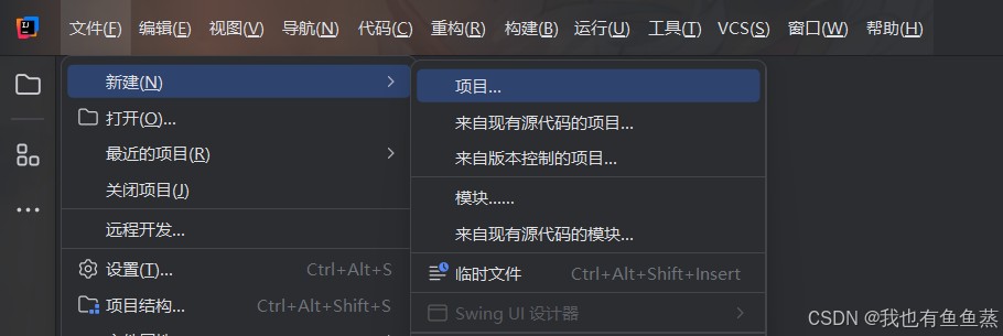 第一步:在文件下拉菜单中,选择新建,选择项目: