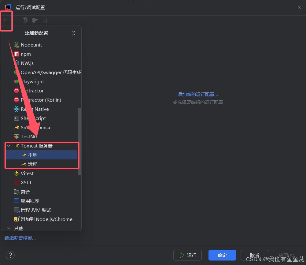 点击加号,选择本地Tomcat