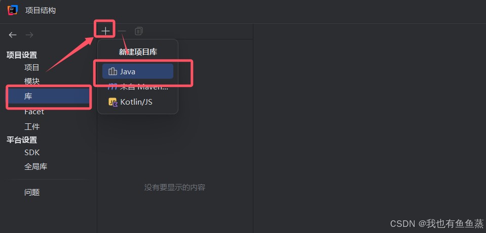 选择库,点击加号,选择java项目库: