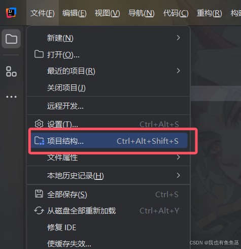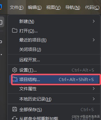 第三步:在文件夹下拉菜单选择项目结构: