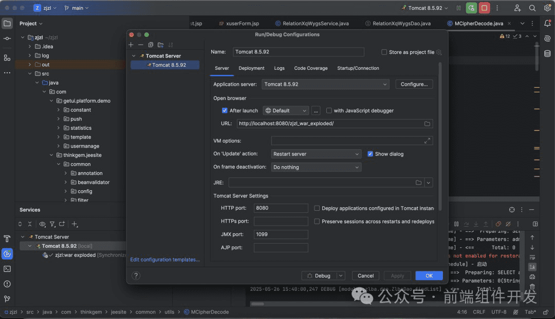 •端口冲突:如果 Tomcat 启动时提示端口被占用,打开 “Run/Debug Configurations” 窗口,在 “Server” 标签页中修改 Tomcat 的启动端口。也可以通过命令行查看占用端口的进程并关闭它。在 Windows 系统中,使用命令netstat -ano | findstr "8080" (8080 为被占用的端口号)查看占用端口的进程 ID,然后使用taskkill /F /PID <进程ID>关闭进程。在 Linux 系统中,使用命令lsof -i :8080查看占用端口的进程,使用kill -9 <进程ID>关闭进程。