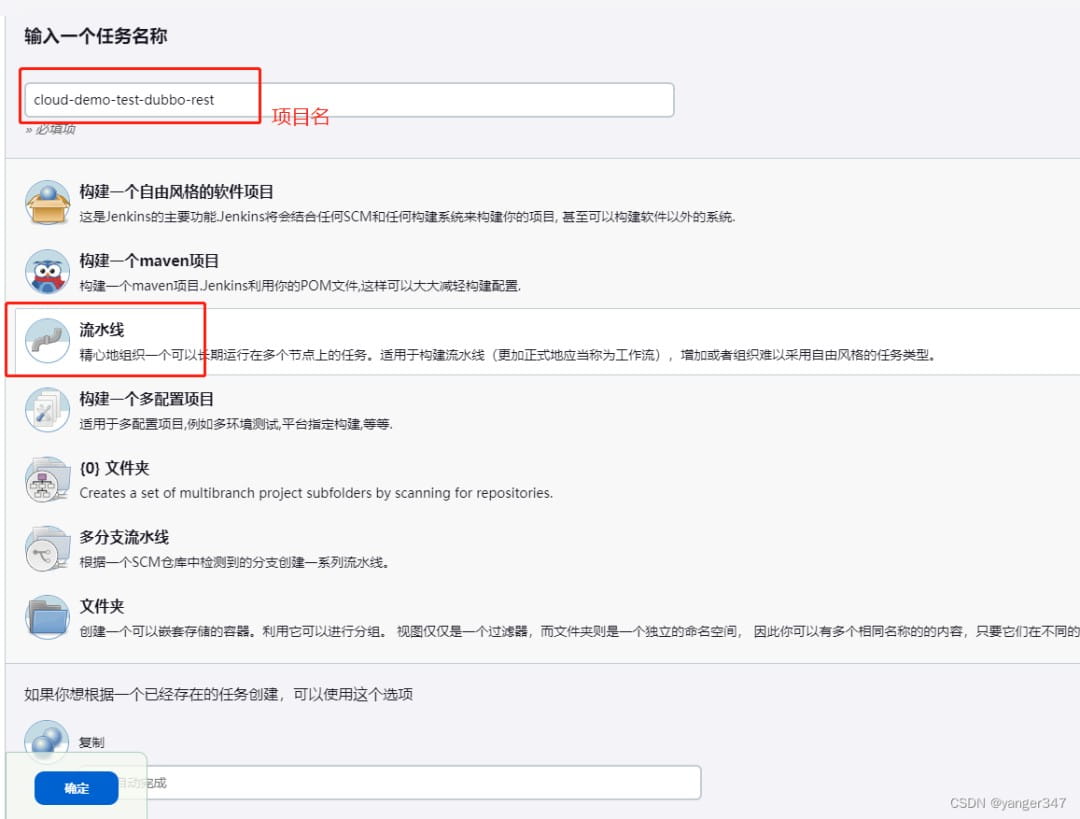 选择流水线 确定